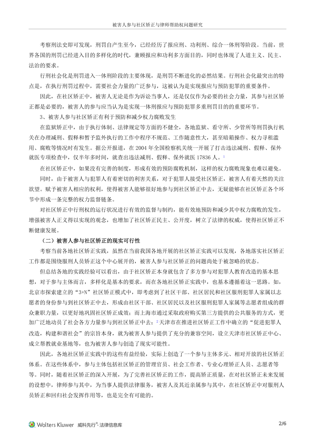 文章论述了被害人参与社区矫正的迫切必要性与现实可行性,强调被害人在社区矫正中应享有知情权、建议权及律师帮助权。