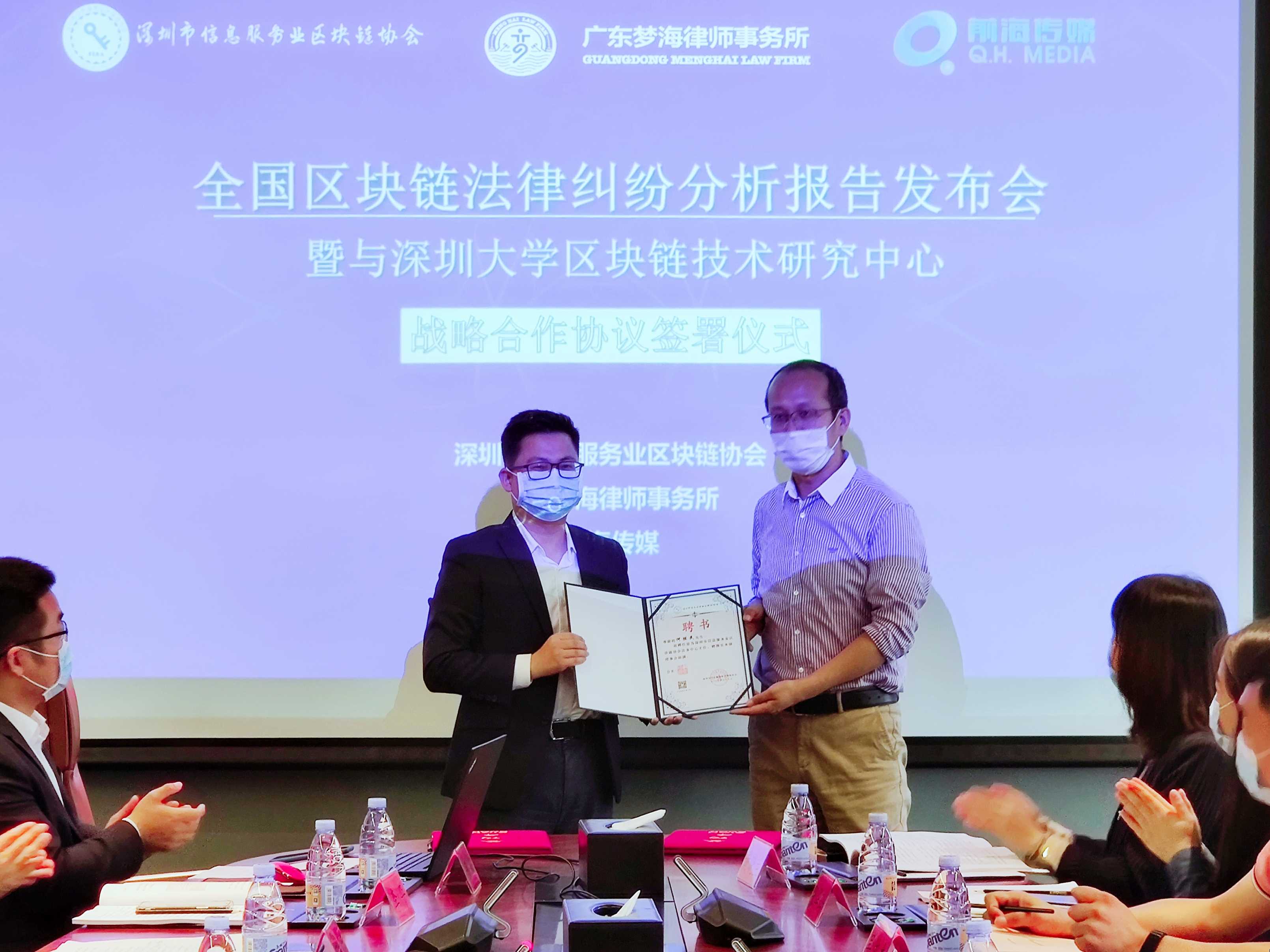 4月16日下午,深圳市信息服务业区块链协会(简称“深圳链协”)、深圳大学区块链技术研究中心、广东梦海律师事务所及前海传媒共同在深圳前海发布了《全国区块链法律纠纷分析报告》,这是国内首个聚焦区块链领域法律纠纷的分析报告,对区块链从业者掌握经营法律风险方面具有很高的参考价值。会上,深圳市首个区块链行业协会法务中心也正式揭牌,这是深圳探索区块链行业治理新方法、行业自律新模式的又一大胆尝试。