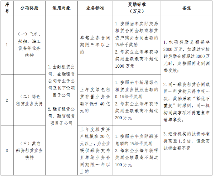 (三)金融租赁和融资租赁经营扶持(《暂行办法》第11条)