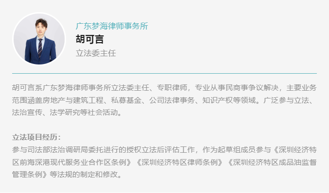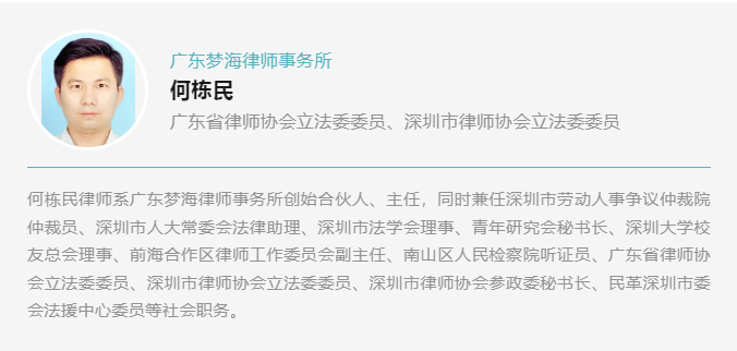 本项目将由广东省律师协会立法委委员、深圳市律协立法委委员、深圳市人大常委会法律助理何栋民律师、广东梦海律师事务所立法委主任胡可言、专职律师修扬等承办