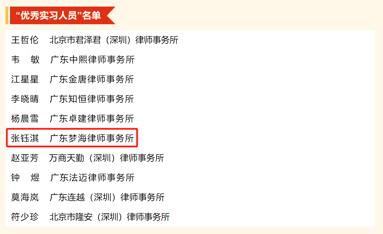 梦海张钰淇荣获深圳律师协会“五四优秀青年”表彰