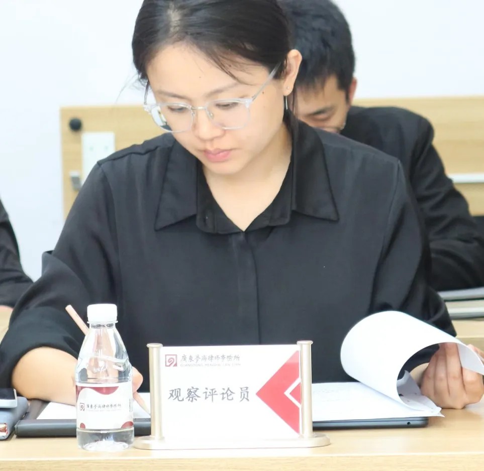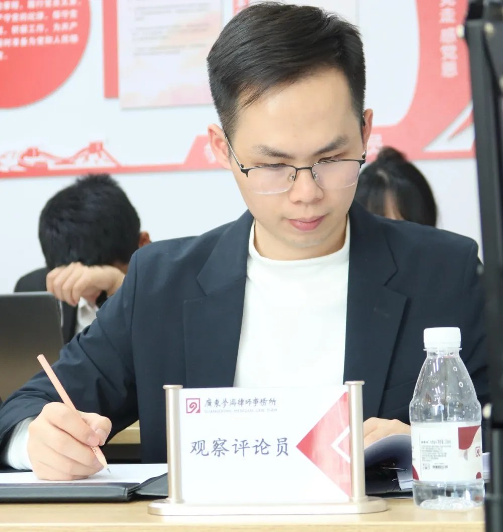 广东梦海律师事务所主任陈纹封律师对本次庭审攻防实训进行了复盘点评。他指出,要以真实实战的状态全身心投入演练,对辩护人而言,需要全方位预判公诉人发问问题、举证逻辑,重点围绕证据细节和公诉意见,迅速做出反应,有力反击,才能真正实现全方位的有效辩护。要以此次演练为契机,不断完善在办刑事案件的辩护方案和庭审策略,确保案件取得全方位的积极辩护效果。