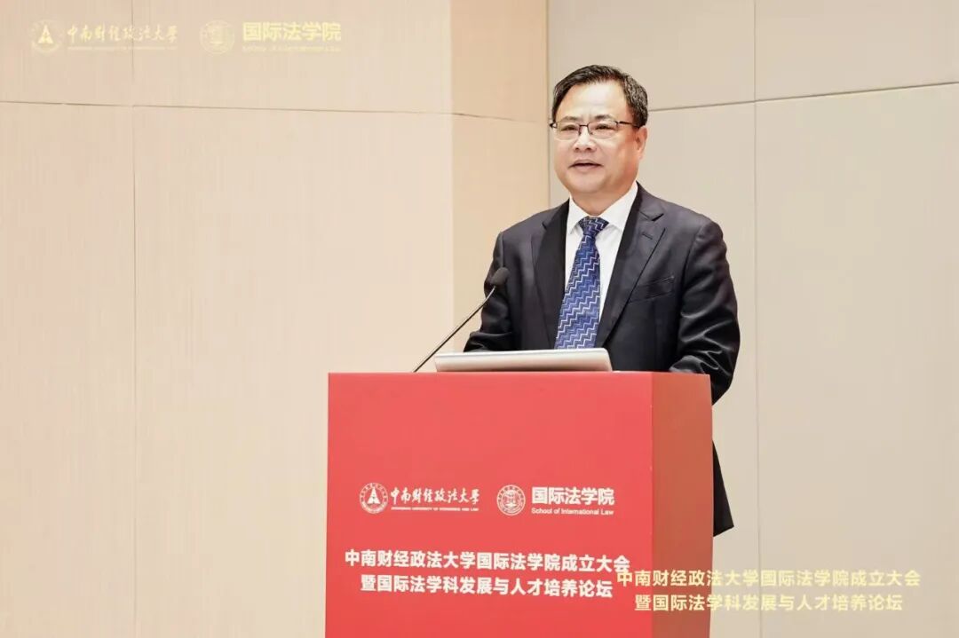 中南财大国际法学院是我国国际法学研究与涉外法治人才培养的重镇,拥有“双一流”建设学科、国际法博士授权点及博士后流动站。在成立大会上,中南财经政法大学校党委书记侯振发代表学校向国际法学院全体师生、校友表示祝贺,向为国际法学科倾注毕生心血的老领导、老教授、老同志表示感谢。他指出,学校国际法学科历史悠久、底蕴深厚,始终与国家法治建设和对外开放同频共振,在涉外法治人才培养、国际法理论创新、参与国际法律实践等领域取得了令人瞩目的成就,不仅奠定了“法学重镇”的坚实基础,更在国家急需涉外法治人才之际,培养输送了大批精通国际规则、胸怀家国天下的专业人才。